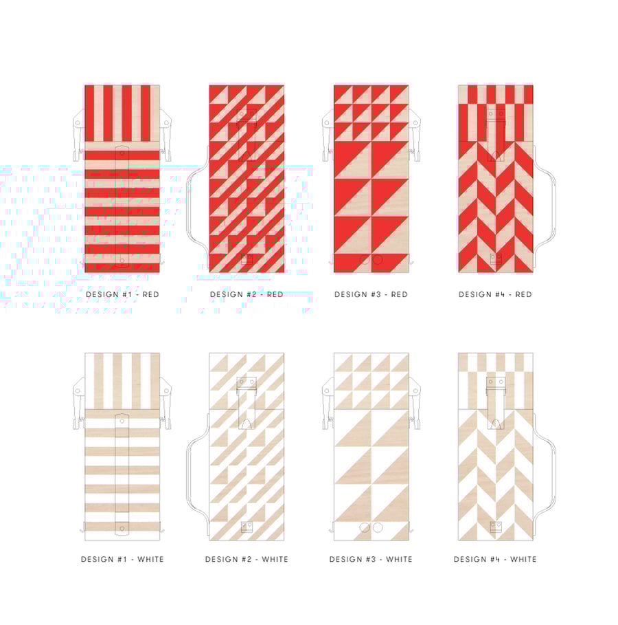 The Pretend Store Lantern (Workstead + Fuzzco) was created exclusively for the Pretend Store series in the Fall of 2013. It is constructed from two plywood boxes, latched together with zinc-plated steel hinges, and equipped with a metal handle for ease of transport. Powered by a re-chargeable battery pack concealed within the lower box, it operates via a toggle switch for 8-12 hours with no charge. It is hand painted with 4 patterns designed by Fuzzco. Utilitarian yet refined, it functions as a portable light source or a permanent fixture.